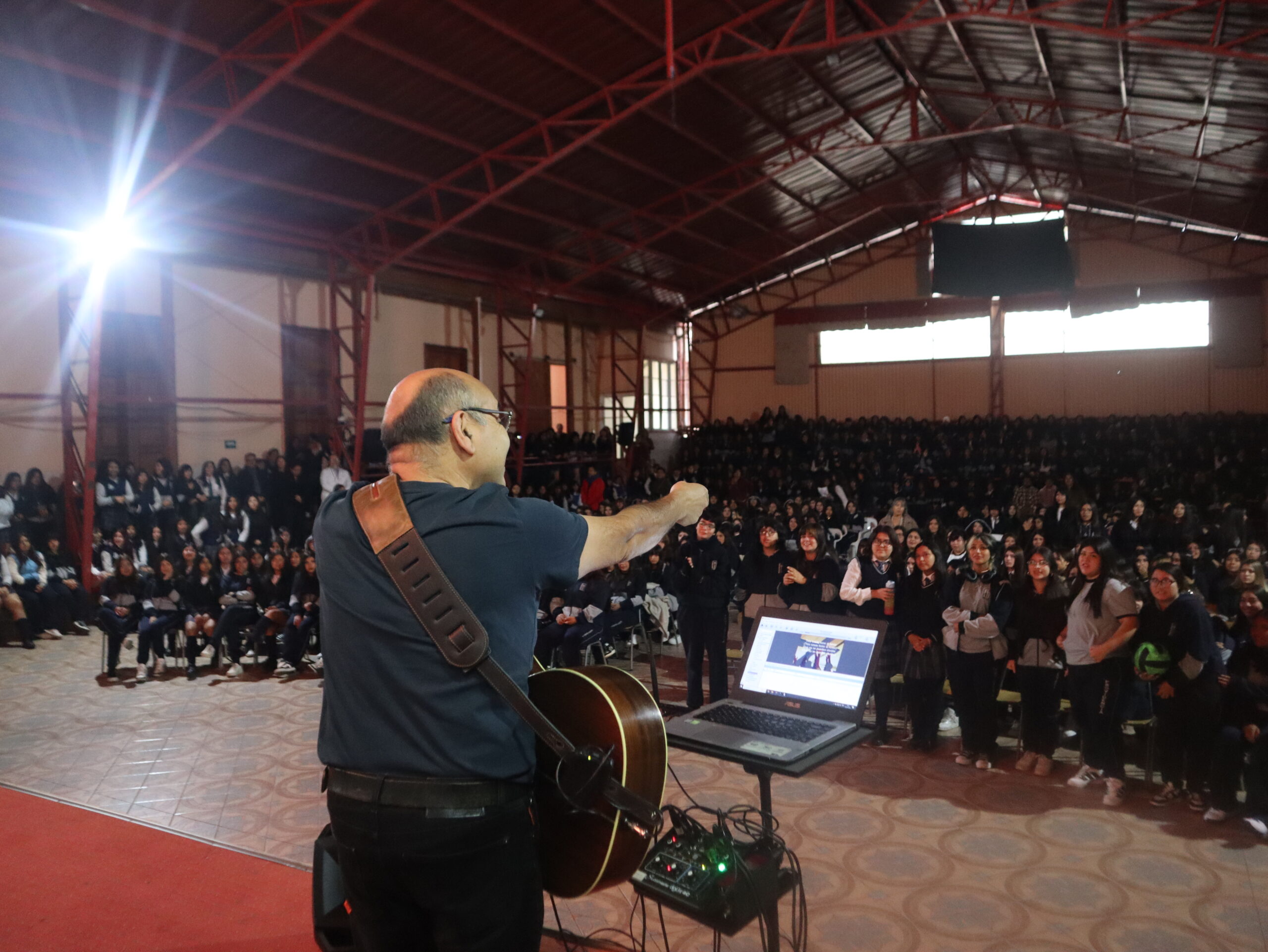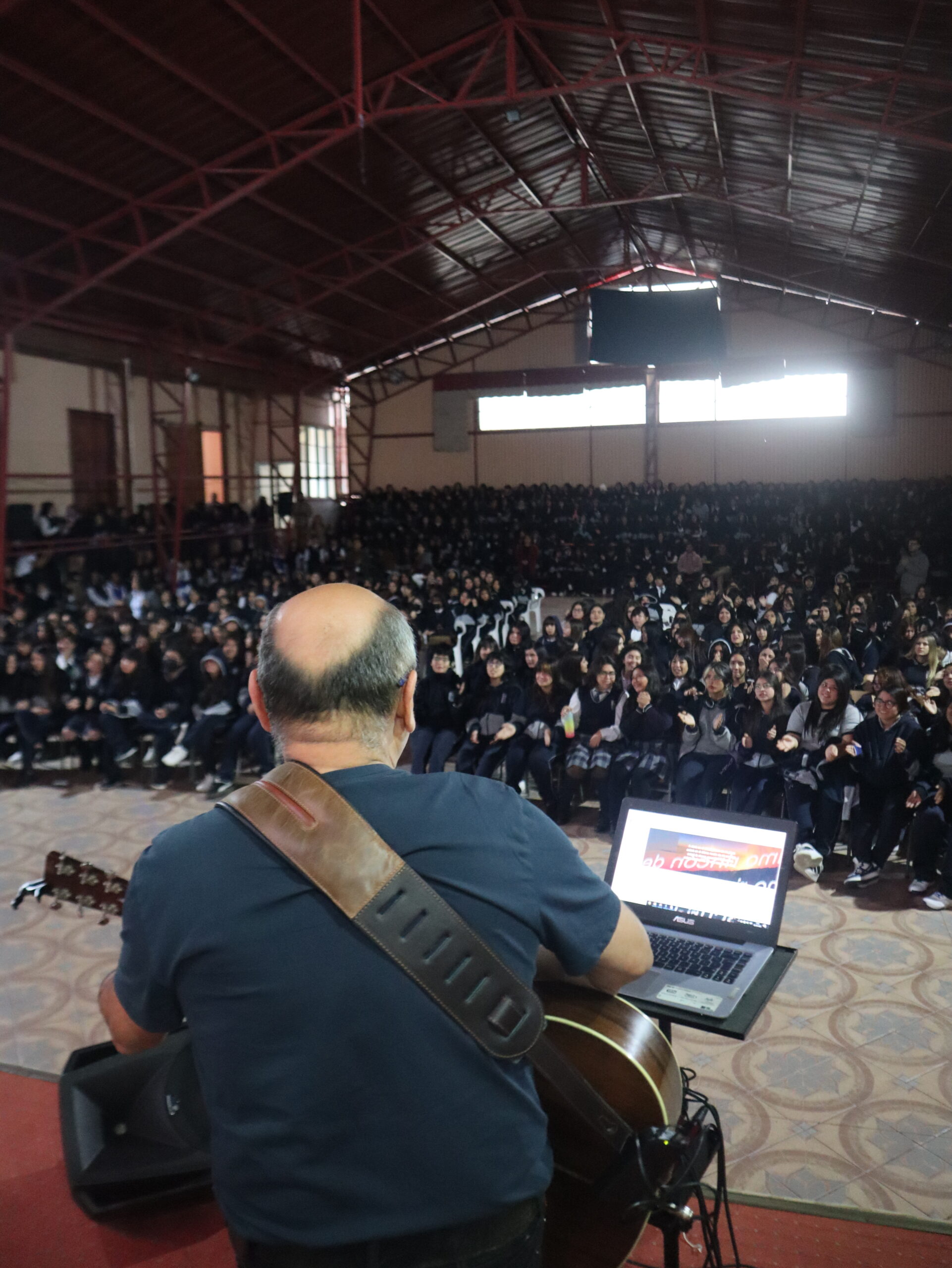 El pasado jueves 2 de abril, en el techado del nuestro colegio, se llevó a cabo la presentación en vivo del cantautor nacional Fernando Leiva, quien compartió su música con la comunidad educativa.