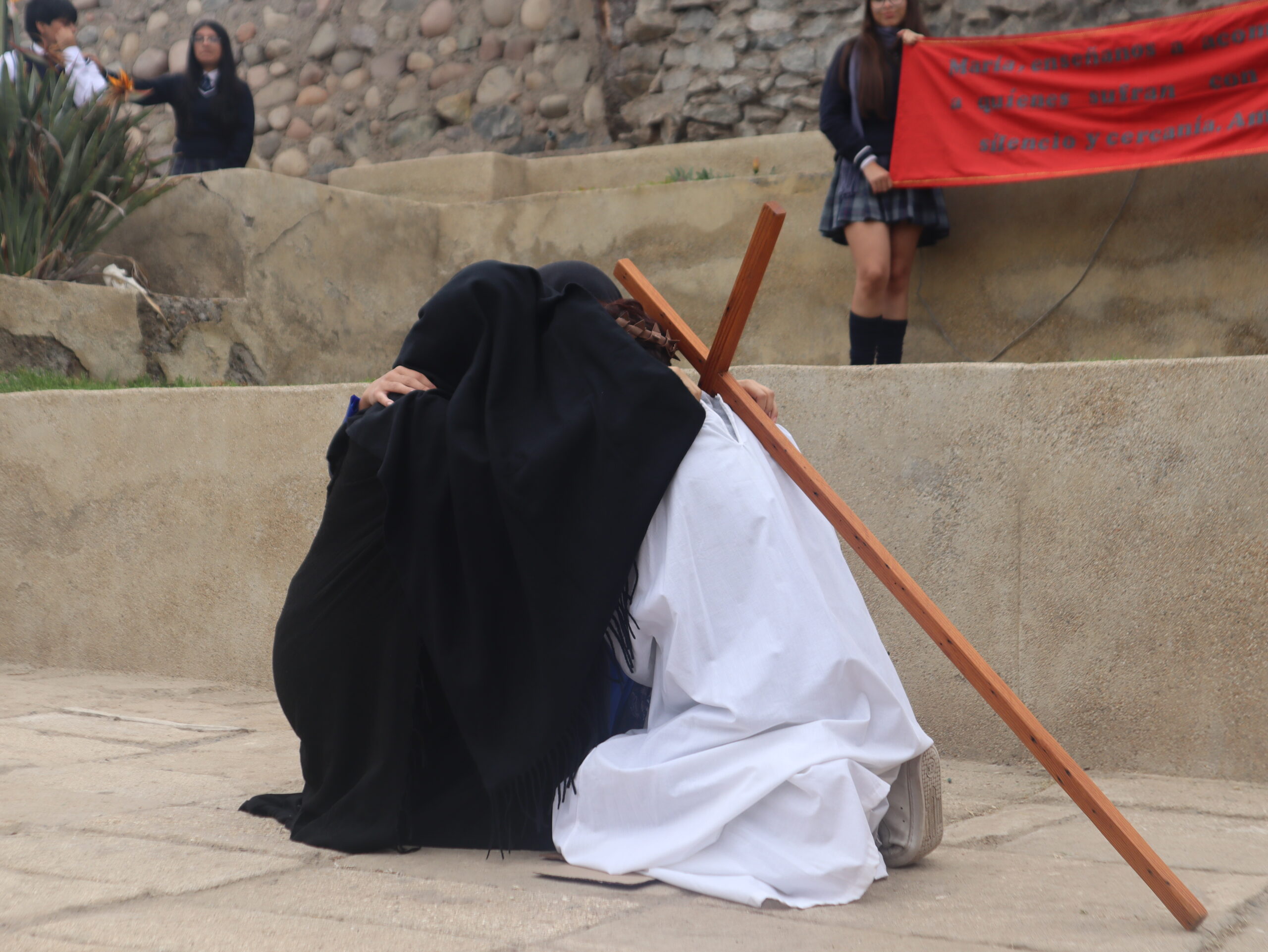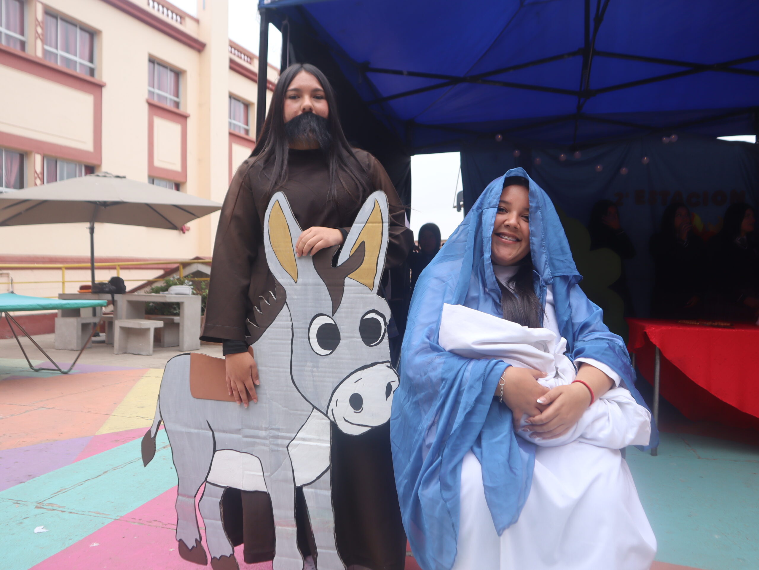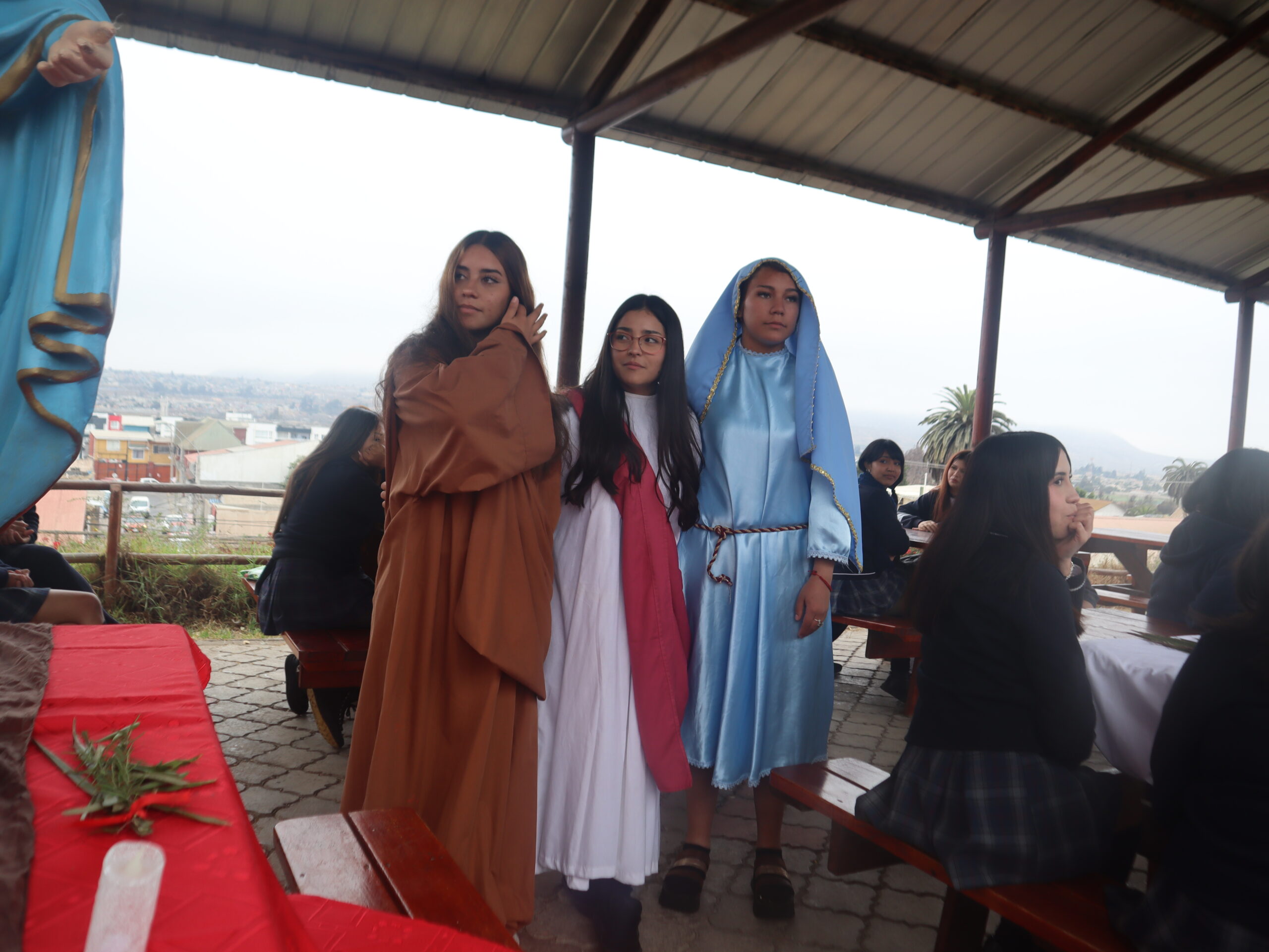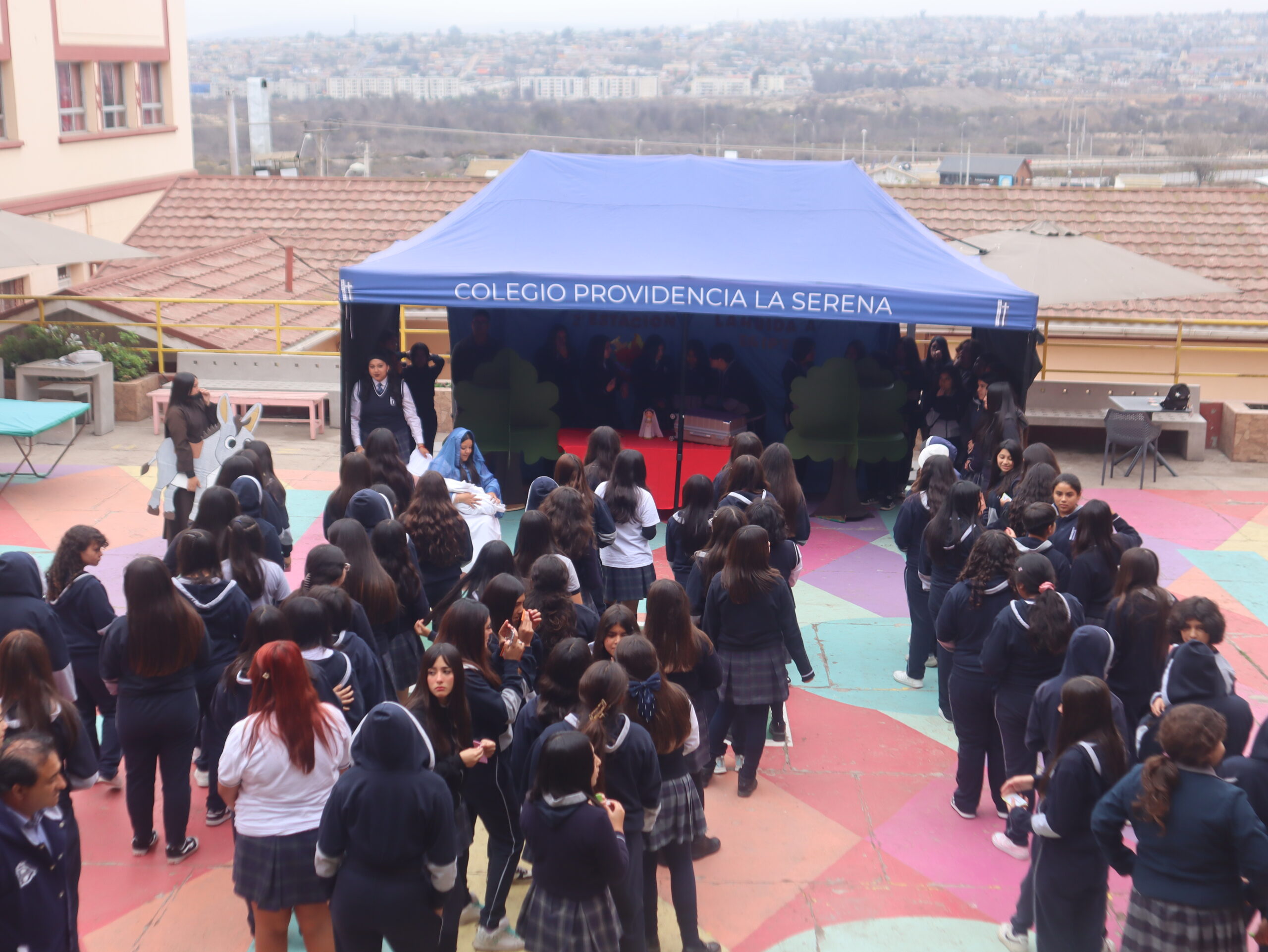 La actividad se desarrolló en distintos espacios del colegio, entre ellos el patio central, el segundo patio, el internado, la capilla, la gruta, el quincho y el salón Bernarda Morín, permitiendo un recorrido simbólico que acompañó cada una de las estaciones.