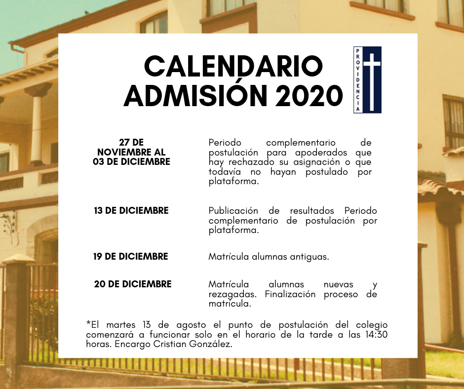 Conoce el calendario del Sistema de Admisión 2020 para nuestro colegio