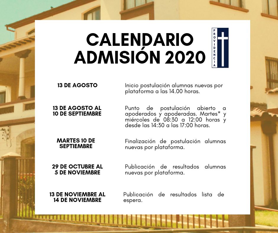 Conoce el calendario del Sistema de Admisión 2020 para nuestro colegio